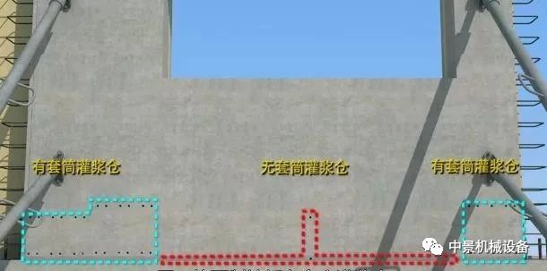 當存在無灌漿套筒的灌漿倉時,首先灌注無套筒的灌漿倉,有套筒的灌漿倉注漿時選擇靠近無套筒的灌漿倉一側的注漿孔。如果離無套筒的灌漿倉*近的注漿孔不便封堵。則可向相反方向順延一個。